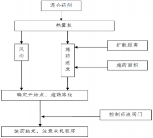 該技術利用熱霧機械啟動后形成的高溫高壓氣體將農藥及熱霧穩定劑形成 含藥熱霧團,在目標空間內形成氣溶膠,當靶標接觸后達到病蟲害防治效果。