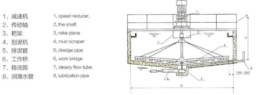 ?產品概述:GZX 型中心傳動刮泥機廣泛用于給水工程中的沉淀池排泥,整機載荷都作用在工作橋中心。污水經中心穩流筒布水后流向周邊溢水槽,隨著流速的降低,污水中的懸浮物被分離而沉降于池底,由刮板將沉淀的污泥刮集到中心集泥槽中,靠靜水壓力將其從污泥管排出。
